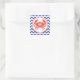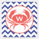Ein Aufkleber mit einer Abbildung einer Krabbe über einem Zickzack Hintergrund. Personalisieren Sie Ihre Initialisierung auf Crab.