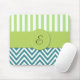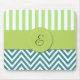 Blue Zigzag, Zickzack, grüne Streifen, Monogramm Mousepad