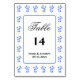 An acrylic sign for table numbers with beautiful bluebell flowers. The background and image can be personalized. Original artwork by W.B.