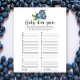 Niedliche Baby Dusche Einladungskarte mit Aquarellbild von Heidelbeeren. Im Text steht: "Ein beerisches süßes Baby ist unterwegs." Matching-Elemente verfügbar.