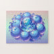 Entspannendes Puzzle - Kosmisches Blueberry Earth Planet Comic Stil ästhetisches Design - Dieses fantasy-weiche Pastellbild wird ai generiert und zeigt einen Haufen Blueberries, in der Mitte ist der blaue Planet Erde. Die Hauptfarben sind blau, violett, hellrosa, lila und grün.