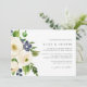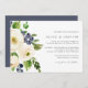 Notre faire-part de mariage Blueberry Lane présente vos détails mariages alignés à droite, accentués par les fleurs d'aquarelle bleu indigo et ivoire, les bleuets et le feuillage vert.