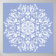 Dieses weiße Mandala liegt auf einem staubigen, bissigen Hintergrund. Die Farben sind weich und entspannt. Teil der Sammlung Pras Mandala.