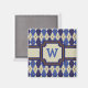 Raute geht 8-Bit mit diesem prächtigen marineblauen, denim blauen und khaki Farbschema mit einem kräftigen braunen Kontraststich und schafft so einen perfekten Look für Liebhaber dieses klassischen Musters. Passen Sie das Monogramm mit dem passenden Initial für eine personalisierte Touch an.