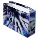 Große, glänzende Geschenktüte mit auffallender gefärbte Krawatte in Blau und Weiß. Siehe dazu passende Einladung, Umschlag, Konfetti und Bevorzugungsbox. Sehen Sie sich die gesamte Psychedelic 60er Gift Bag-Sammlung in den SONDERTOUCHS an. | Abschnitt Gastgeschenke.