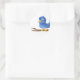 Eine blaue Vogelkarikatur, die auf einem Ast sitzt