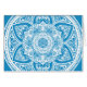 Dieses weiße Mandala liegt auf einem hellen, mohnfarbenen, orangefarbenen Hintergrund. Die Farbe ist hell und kreativ. Teil der Sammlung Bardh Mandala. Dieses Design wird möglicherweise nicht so hell wie es online erscheint.