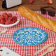 Dieses weiße Mandala sitzt auf einem echten blauen Hintergrund. Die Farben sind sehr beruhigend und friedlich. Teil der Payon Mandala Kollektion.