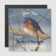 Un joli petit oiseau bleu qui hivernait sur une branche sur un fond de neige avec les mots inspirants Que le grand oiseau du bonheur réside toujours en vous. Personnalisez avec votre texte. Photo nature par Susan.