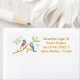 Address labels with a beautiful image of a bear of Eastern bluebirds. Eastern bluebirds are only found in North America. While the female bird's colors are not as bright as the male's colors, both display fascinating blue and reddish-orange throat and breast with a white underside. The background and bird image can be personalized. Original artwork by W.B.