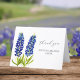 Bluebonnets, Carte de remerciements florale bleu aquarelle. Calligraphie simple et élégante. Oeuvre unique peinte à la main par l'artiste Monika Howarth. Parfait pour un Mariage.