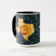 Un arrière - plan de bleuets peints à l'huile, avec la rose jaune du Texas dans la forme de l'état.