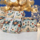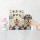 Südwestliche Verpackungspapier in Wüste Blues und Terrakotta, hervorgehoben durch Stammesfedern und Motiven.