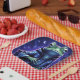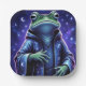 Diese fantasievolle Party-Papierplatte bietet ein lustiges, pulsierendes digitales Bild eines fröhlichen Froschzauberers