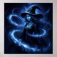 Dieses Fantasy-Poster zeigt ein lebendiges digitales Bild einer schönen Hexe in einem magisch blauen Nachthimmel