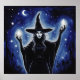 Dieses Fantasy-Poster besticht durch eine geheimnisvolle Hexe mit leuchtenden Augen und Händen, die unter einem sternförmigen Nachthimmel stehend und von Silhouetten von Bäumen umgeben sind. Der Halbmond leuchtet ihren Weg und trägt so zur mystischen Atmosphäre bei. MysticStarWitch ist als Ölmalenkunstdruck fertig gestellt.