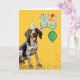 Bluetick Coonhound Dog Party Hat Yellow Birthday Karte