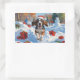Bluetick Coonhound läuft im Schnee mit Weihnachten Rechteckiger Aufkleber