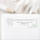 Elegantes und regales Logo für Zahnzahmen-Etiketten. Wir haben dieses schöne Logo-Adressetikett für Zahn entworfen. Eine moderne Zahnzahnform mit blühend Baumzweigen und Blattwerk, die im weißen Bereich der Zahnzahnform entworfen wurde. Schöne Blätter und Blumenblätter bilden den Rahmen des Adressetiketts. Passen Sie Ihre Firmenname-Adresse an. Alle Illustrationen und Logos, die in unserem Design der Zahnzahnadressen-Etiketten enthalten sind, sind handgezeichnet Originalkunstwerke von Moodthology.