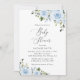 Mit dieser charmanten Babydusche laden Sie Freunde und Familie in Stil und Set zu einem erlebnisreichen Tag ein. Das Design ist mit staubblauen Aquarellfarben-Blume und Grün auf weißem Hintergrund gestaltet.