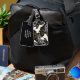 Eleganter Weihnachtshirsch mit Blumenmotiven auf schwarzem Hintergrund.