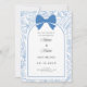 Fügen Sie Ihrem besonderen Tag eine charmante Touch mit dieser eleganten blauen Bogen-Hochzeitseinladung hinzu. Mit zarten Blumenskizzen und anmutigem Band an der Spitze verbindet dieses Design klassische Romantik mit moderner Einfachheit. Ideal für stilvolle Feste, Gartenhochzeiten oder Veranstaltungen mit blauem Thema. ● Anpassbare Namen, Datum und Ort. ● perfekt für Frühjahr, Sommer oder elegante Hochzeit. ● Hochwertiger Druck für dauerhafte Erinnerungen.