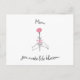 "Diese elegante Postkarte zeigt die herzliche Botschaft "Mama, du machst mein Leben blühen", zusammen mit einem zarten Design der Rose - perfekt für Muttertag, Geburtstage oder einfach nur daran erinnern, wie viel sie dir bedeutet. Egal, ob Sie es in ein Geschenk stecken, es über die Meilen schicken oder es mit einer Umarmung an sie übergeben, diese Postkarte ist eine wunderbare Möglichkeit, Liebe in voller Blüte zu teilen."