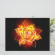 Blühende Rose aus Feuer und Flamme auf schwarzem Hintergrund.