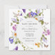 Feiern Sie die Mutter zu sein! Die Duscheinladung beinhaltet einen Blumenkranz und Schmetterlinge in Aquarellen. Personalisieren Sie Ihre Daten oder klicken Sie auf "Weitere Anpassungen vornehmen", um Schriftart Stile, Größe und Farben zu bearbeiten.