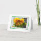 Eine Notizkarte mit einer schönen hellen Sonnenblume, die bereit ist, voll blühen in einem weißen und grünen Rahmen. Die Karte liest May Ihr Tag hell und schön in einem grünen Schriftart, um den grünen Rahmen.