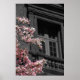 Blühende Hundsholzbäume mit dem Carillon, Kriegsdenkmal im Hintergrund.