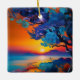 Blühender Baum am See bei Sonnenaufgang Keramikornament