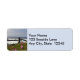 Diese Etiketten zeigen ein Foto des Pazifischen Ozeans mit schäumenden weißen Wellen. Ein rustikaler Holzzaun am Ufer wird mit schönen rosafarbenen Blume am Fuße gezeigt. Passen Sie Ihre Kontaktdaten an. Diese Etiketten sind perfekt für Liebhaber des Meeres.