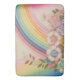 Ein Regenbogen endet in einem pastellfarbenen Blumengarten.