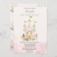Diese erste Geburtstagseinladung mit Aquarellburg und Blume.