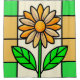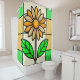 eine farbige Glasscheibe, die eine gelbe und weiße Farbe mit grünen Blätter zeigt.