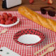 Blume aus schwarzem und rotem Mohnblumen Pappteller