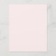 Ein eleganter, weißer Hintergrund mit einem großen rosa Bug und rosa Blume. Personalisieren und fügen Sie einen Namen und Party-Details hinzu. Text auf dem Bogen: Baby in Bloom Back: weich rosa Hintergrund. 1 Blatt = 1 Einladung mit Druckkante bis Kante.