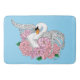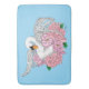 Ein weißer Schwan, umgeben von rosa Blume und einem blauen Hintergrund