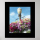 Poster mit einem Foto-Druck eines Vintagen Lampenpostens mit Blume Körben. Passen Sie dieses Objekt an oder kaufen Sie, wie es ist.