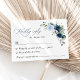 Vervollständigen Sie Ihre Hochzeitssaison mit dieser stilvollen RSVP-Karte. Die Blume sind blau und marineblau, die Grünflächen auf weißem Hintergrund.