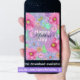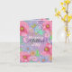 Diese Begrüßungskarte des Muttertags ist ein schöner Ausdruck von Liebe und Wertschätzung. Die Karte ist mit einem lebhaften und bunten Blumendesign geschmückt, das sofort ins Auge fällt. Große rosa Blüten und kleinere violette Blumen sind faszinierend detailliert und zeigen ihre natürliche Schönheit vor dem Hintergrund sanfter Pastellfarben. Im Zentrum der Karte steht die herzliche Botschaft "Muttertag des Glücks", die in einem eleganten Schriftart mit schwarzen Schriften und einem modernen hellrosa Schriftart geschrieben ist. Dies stellt einen atemberaubenden Kontrast zu den lebhaften Farben der Blume dar, was das Gefühl hervorhebt.