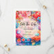 Save the Date Karte mit einer farbenprächtigen Sammlung von Frühlings- und Sommerkollektionen. Rosa Orange und Blau dominieren das Farbschema. Helle und mutige Blumenarrangements strahlen Glück aus. :