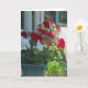 Rot-weiße Geranien in einer Blume-Box auf der Veranda einer Hütte in Oak Bluffs auf Martha's Vineyard. Die Martha's Vineyard Campmeeting Association (MVCMA), eine beliebte Attraktion auf der Insel, ist Zuhause zu Hunderten von Viktorianischen Lebkuchen-Hütten. Oak Bluffs war einst als Hütte City bekannt. Martha's Vineyard liegt in Massachusetts, in der Nähe von Cape Cod.