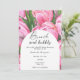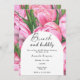 Aquarellrosa Blume Thema Brautparty-Karte mit Aquarellbildern von Bouquet-Peonies mit Grün. Elegante Kalligraphie-Handschrift, ideal für Frühjahr-, Sommer- oder Herbsthochzeiten.