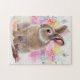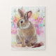Ein hübscher Hasen umgeben von Blume in Aquarell.