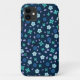 Blumenmuster auf marineblau-blauem Hintergrund.