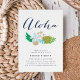 Aloha! Ein hawaiianisches oder luauisches Hochzeitsessen Probe vor dem großen Tag? Einladende Probe-Dinner-Einladungen mit einem Bouquet tropischer Blume in eleganten Strandtönen und "Aaloha" in schicken modernen Schriftzeichen. Karten werden in Wasser umgetaucht.
