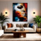 Ein Gesicht entsteht aus kühnen Pinselstrichen, wo brennende Rosen und tiefe Schatten verborgene Emotionen enthüllen. Ein viszerales Porträt der Seele, das Schönheit, Schmerz und Geheimnis in geschichteter Farbe und Textur vereint.