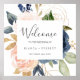 Dieses weiße und marinöse Hochzeitsposter ist für eine blumengeschmückte Hochzeitsfeier ideal. Die Blume sind weiß und grün. Das klassische und elegante Design besticht durch moderne Aquarellblau- und Rosa-Blume. Passen Sie das Poster mit dem Namen der Braut und Bräutigam und dem Datum der Hochzeit an.